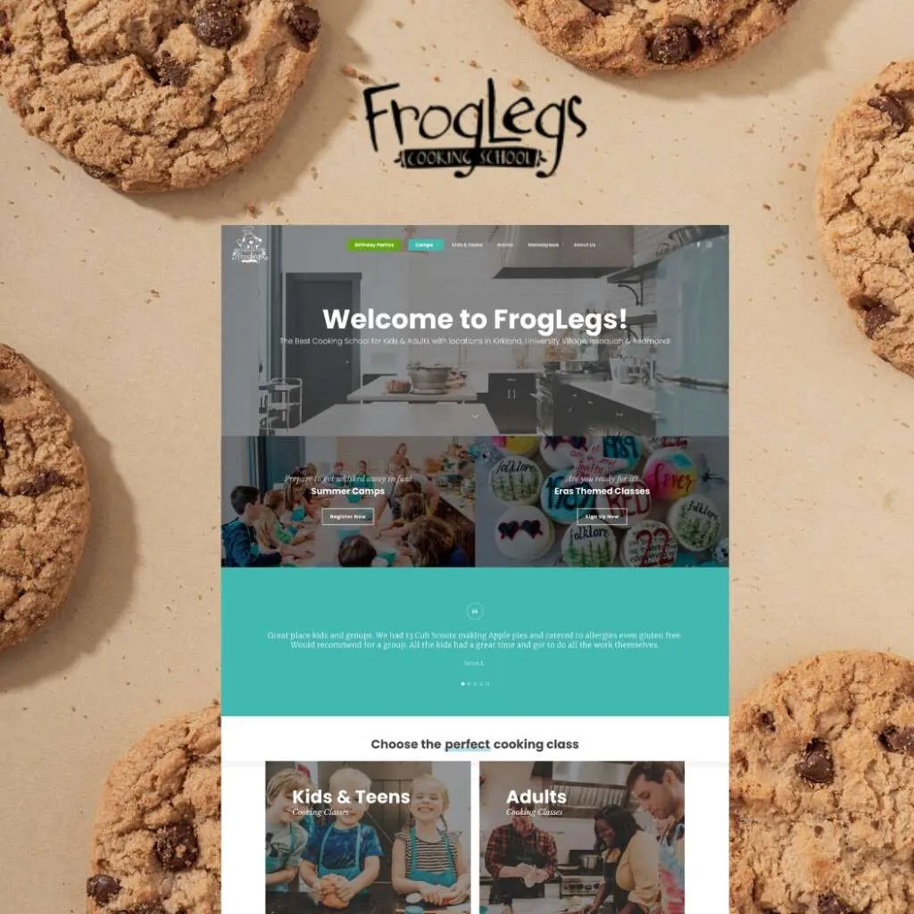 Modernize FrogLegs' digital presence and expand market reach by updating website design, improving functionality, and refreshing brand identity to attract both children and adult customers across expanding locations.